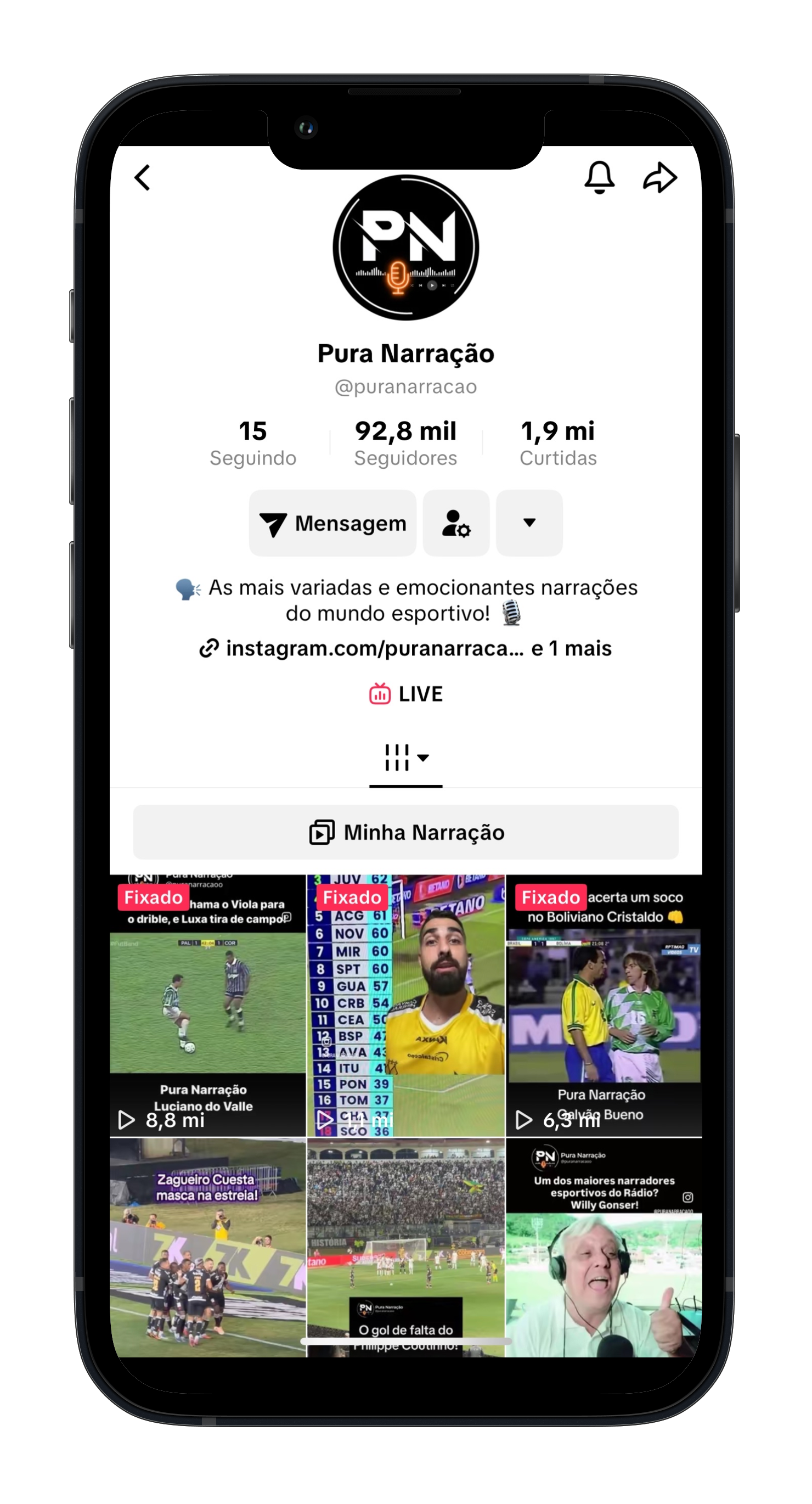 O Pura Narração nasceu com o intuito de homenagear narradores esportivos. Em 2017 iniciamos pela plataforma do Instagram, onde atingimos a marca de 35 mil seguidores e tivemos nossa página desativada. Anos se passaram, e em 2020 na pandemia criamos novamente do zero, onde fomos desativados com 19 mil seguidores. Pela terceira vez em 2023 criamos novamente do zero e estamos até hoje! Nossa página teve um reconhecimento enorme nesse período, onde nomes como Galvão Bueno, Silvio Luiz, Luis Roberto, Luiz Carlos Júnior, José Carlos Araújo, Luiz Penido, Nilson César, Pedro Ernesto Denardim.